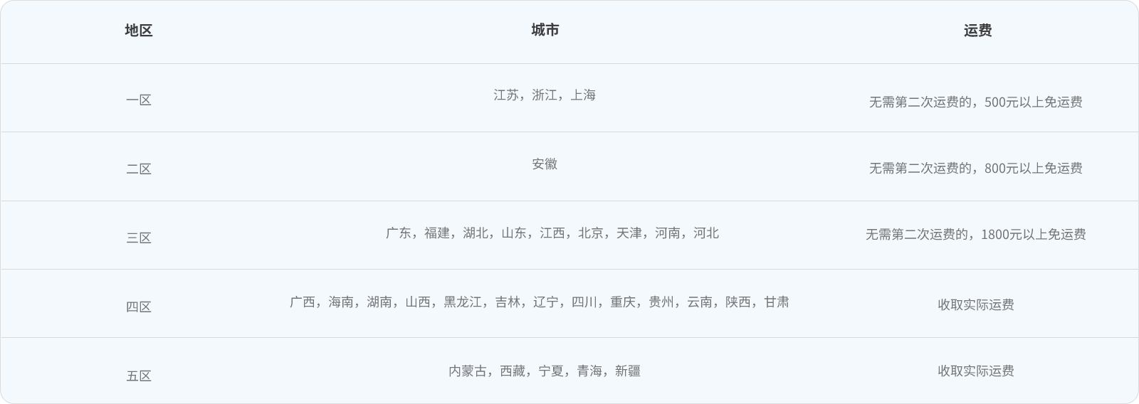 2)以上各區免運費的地區為盛央非自營物流配送范圍內地區,若收貨地址超出所選快遞的配送范圍,我司有可能直接轉其他可到達的運輸方式,并另外加收實際運費。